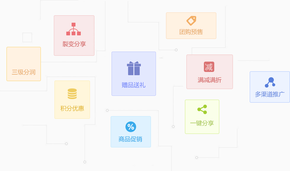 丰富的营销推广工具,让成交更容易推广+吸粉+客户粘性,精准营销,快速促成订单;